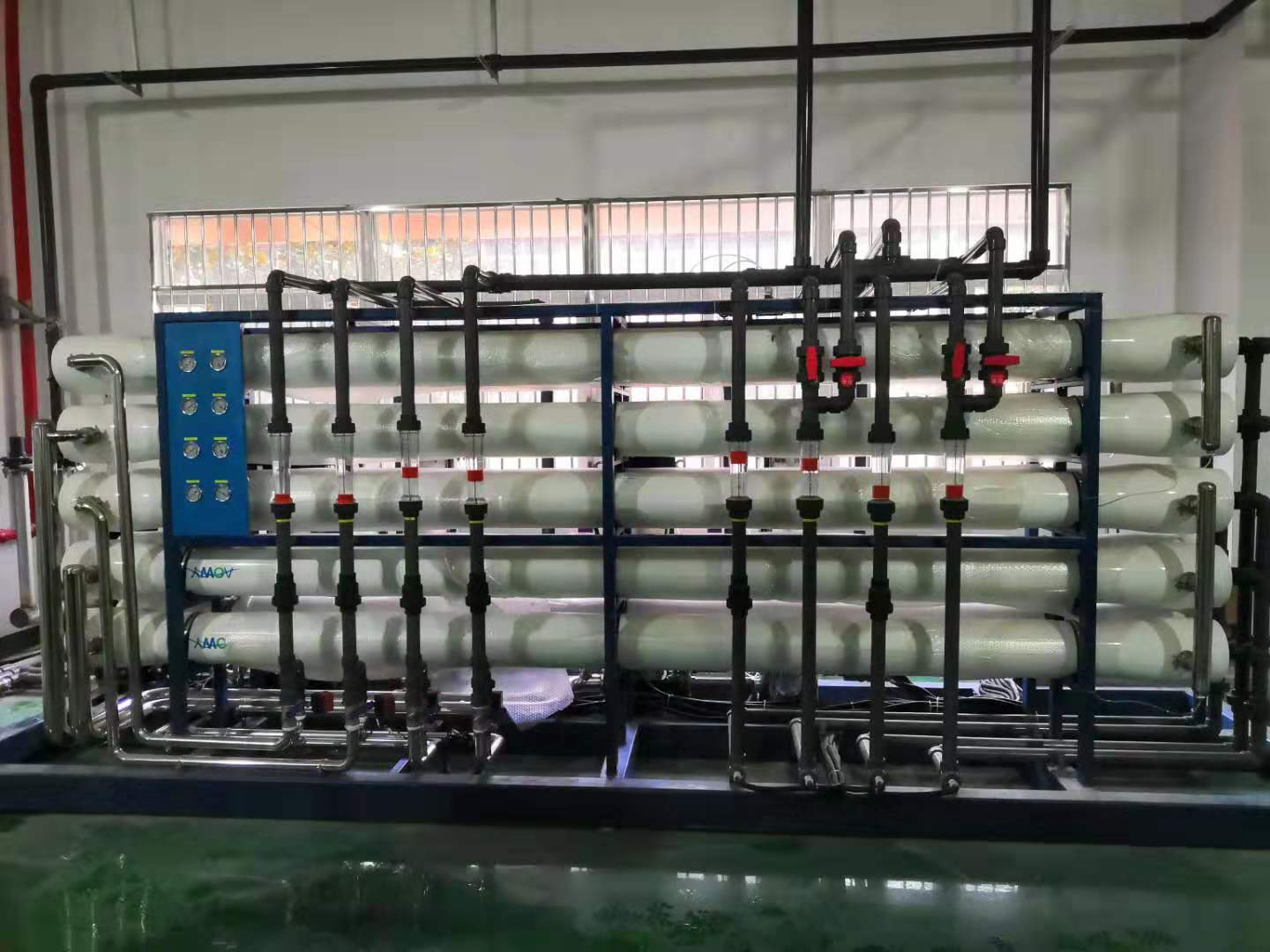 反滲透設(shè)備是圍繞反滲膜而組織成的一套水處理系統(tǒng),一套完整的反滲透系統(tǒng)分別由預(yù)處理部分、反滲透主機(jī)(膜過(guò)濾部分)、后處理部分和系統(tǒng)清洗部分共同組成。